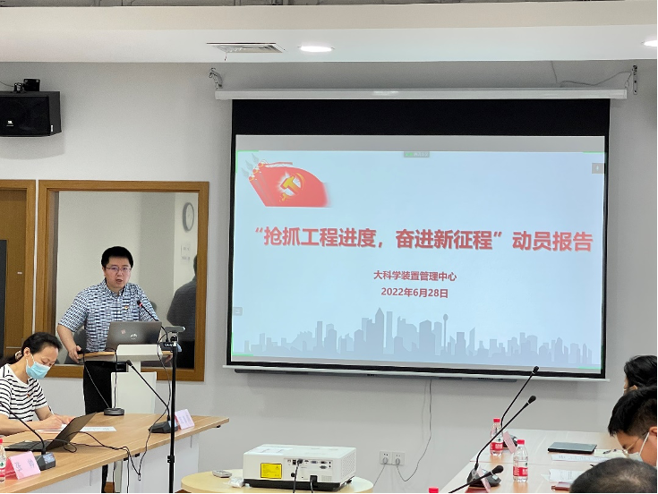 6月28日,大科学装置管理中心团支部组织召开了“喜迎二十大 奋进新征程 庆祝建党101周年”主题党日活动。院党委委员、副院长魏伟应邀出席本次活动。因疫情防控要求,本次会议采取线上线下相结合的方式进行。团支部全体党员、入党持续分子、双重组织生活人员,管理中心各部负责人及全体工作人员、尖刀班人员代表出席本次活动。活动由高研院副院长、管理中心团支部书记屈炜主持。