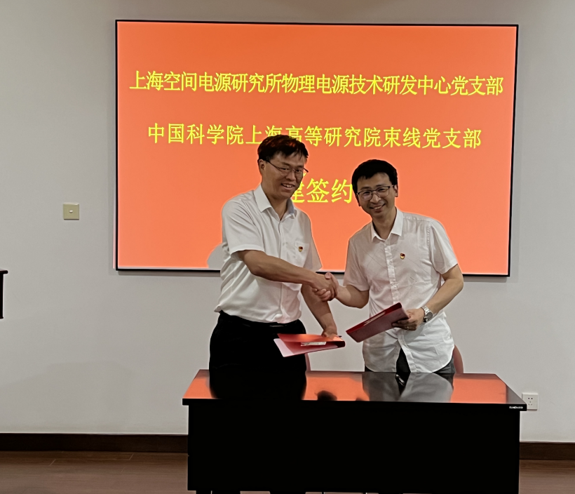 会上,刘平对上海空间电源研究所物理电源技术研发中心团支部党员同志的拜访表示热烈的欢迎。王训春和束线团支部副书记金利民分别介绍了团支部基本情况,以及空间电源国家重点实验室和上海光源的开展历程、核心技术、科研成果等情况,研讨了以科研合作为抓手召开支部结对共建的思路。王训春和刘平分别代表双方支部签署了团支部共建协议书。