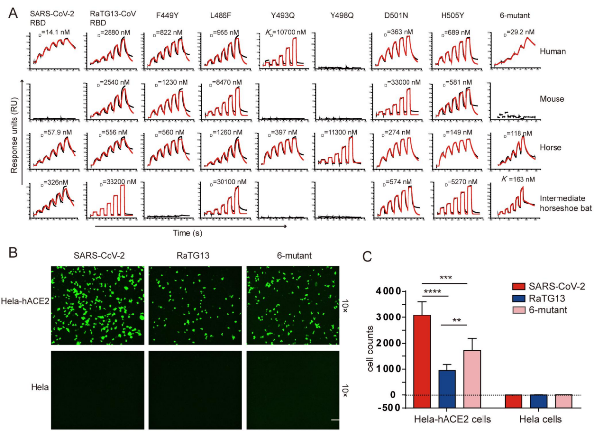 上海光源团队与用户合作揭示了冠状病毒RaTG13的跨种识别分子机制