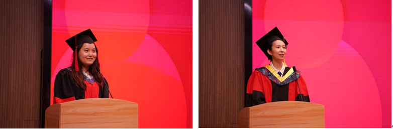 随后,国科大暨北京市优秀毕业生取得者安芸蕾代表全体毕业生发言,回顾了五年求学期间感受到的高研院的飞速开展,难忘在高研院刻下的青春奋斗印记。安芸蕾表示,在这里留下的汗水与泪水,将是毕业生们受益终身的财富。走上新的人生征途,将谨记导师的谆谆教诲,恪守高研院的院训理念,真正做到上善若水、海纳百川、协力创新、同赢未来。