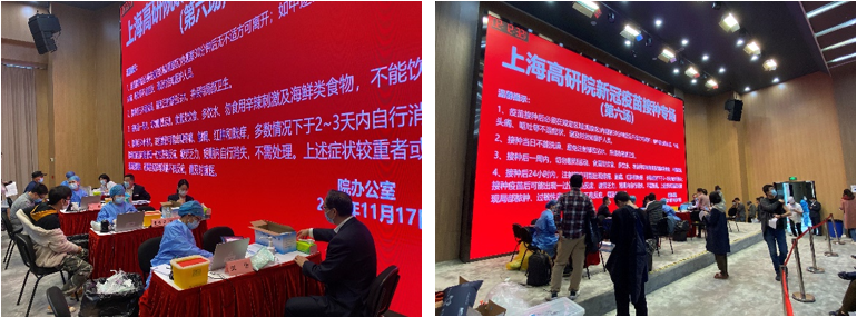 为筑牢疫情防控安全屏障,让免疫力升级,11月17日下午,巅峰国际在海科路100号园区开设新冠疫苗接种专场(第六场)——加强针专场,组织各部门、各中心人员前往接种,半天顺利接种418人。