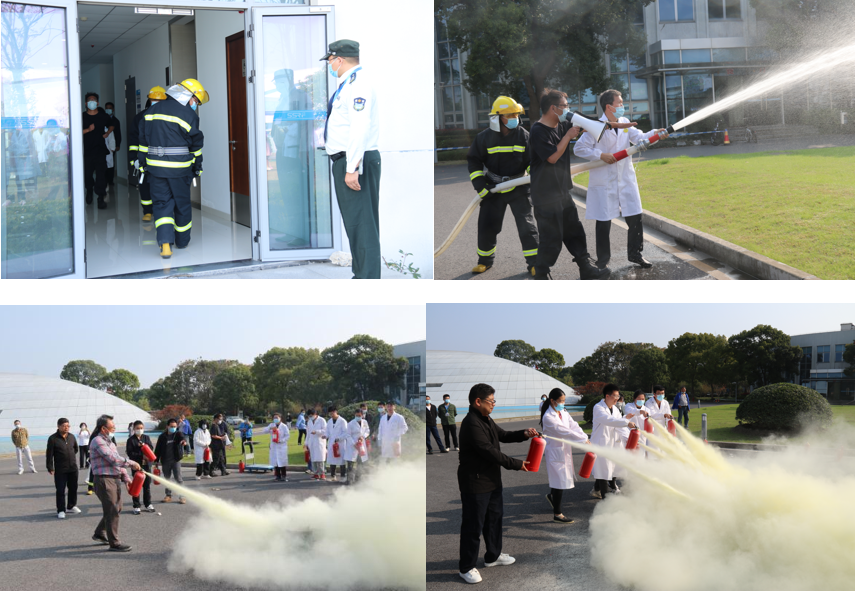 两个园区近200余人参与疏散演练。屈炜副院长指挥了本次演练,院办公室、技术安全中心及物业安保人员落实组织。按照预案,随着警报响起,海科路100号园区9号楼、张衡路239号园区M楼内人员迅速从消防通道有序撤离,并在紧急集合点集结清点人数;身穿战斗服的义务消防员冲入楼内搜救灭火,抢运伤员。疏散演练之后,安保部门还安排科研人员、学生和物业人员练习了灭火器、消防水龙的正确使用。